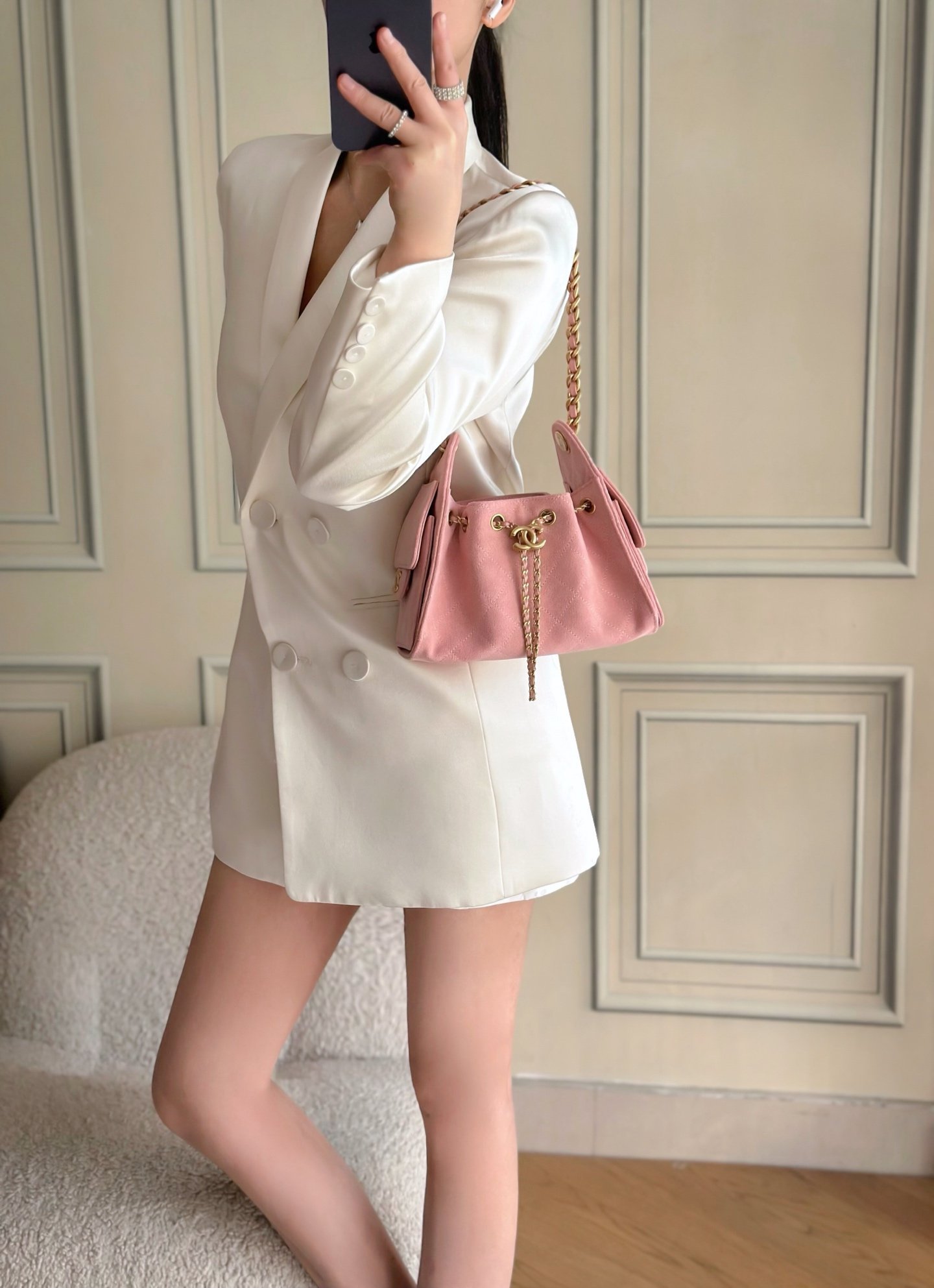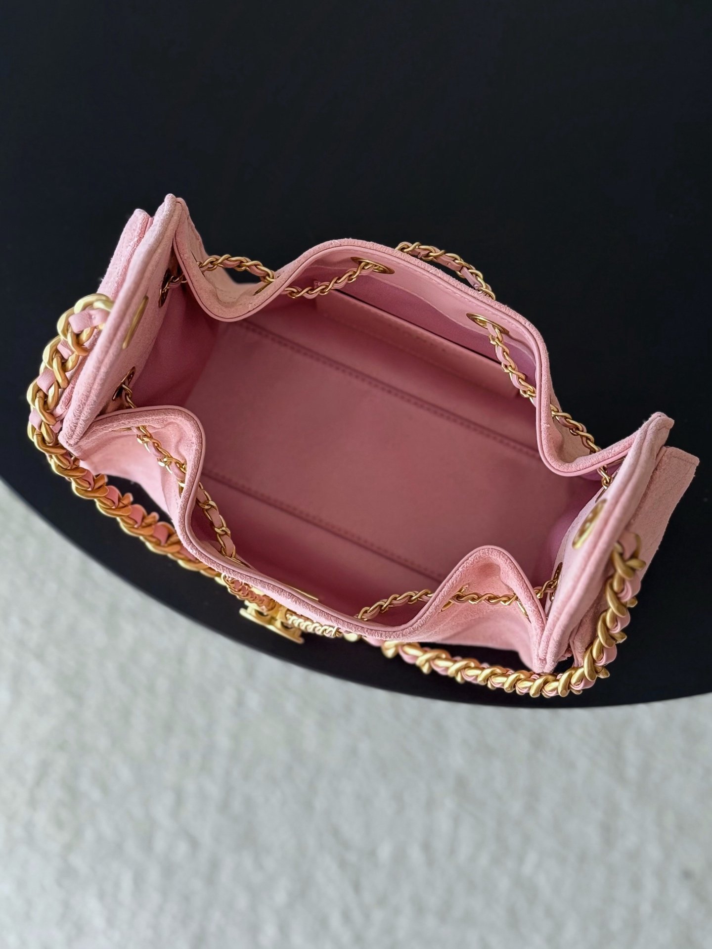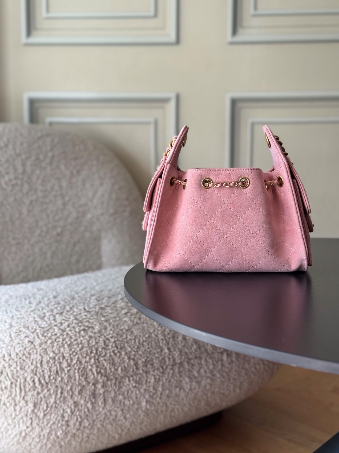 The multi-pocket construction amplifies effortless, laid-back charm, paired with high-luster vintage gold-tone hardware and the iconic logo — securing its status as the season’s undisputed standout. Resembling a hammock-style silhouette, it features distinct street-style edge and generous storage capacity.