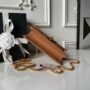Paired with vintage gold-tone metal double-C buckle and chain shoulder strap.