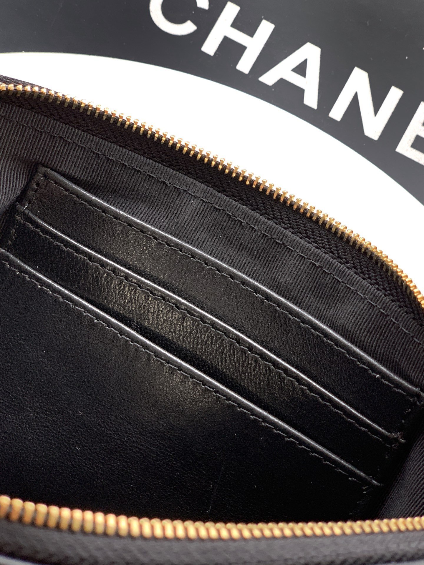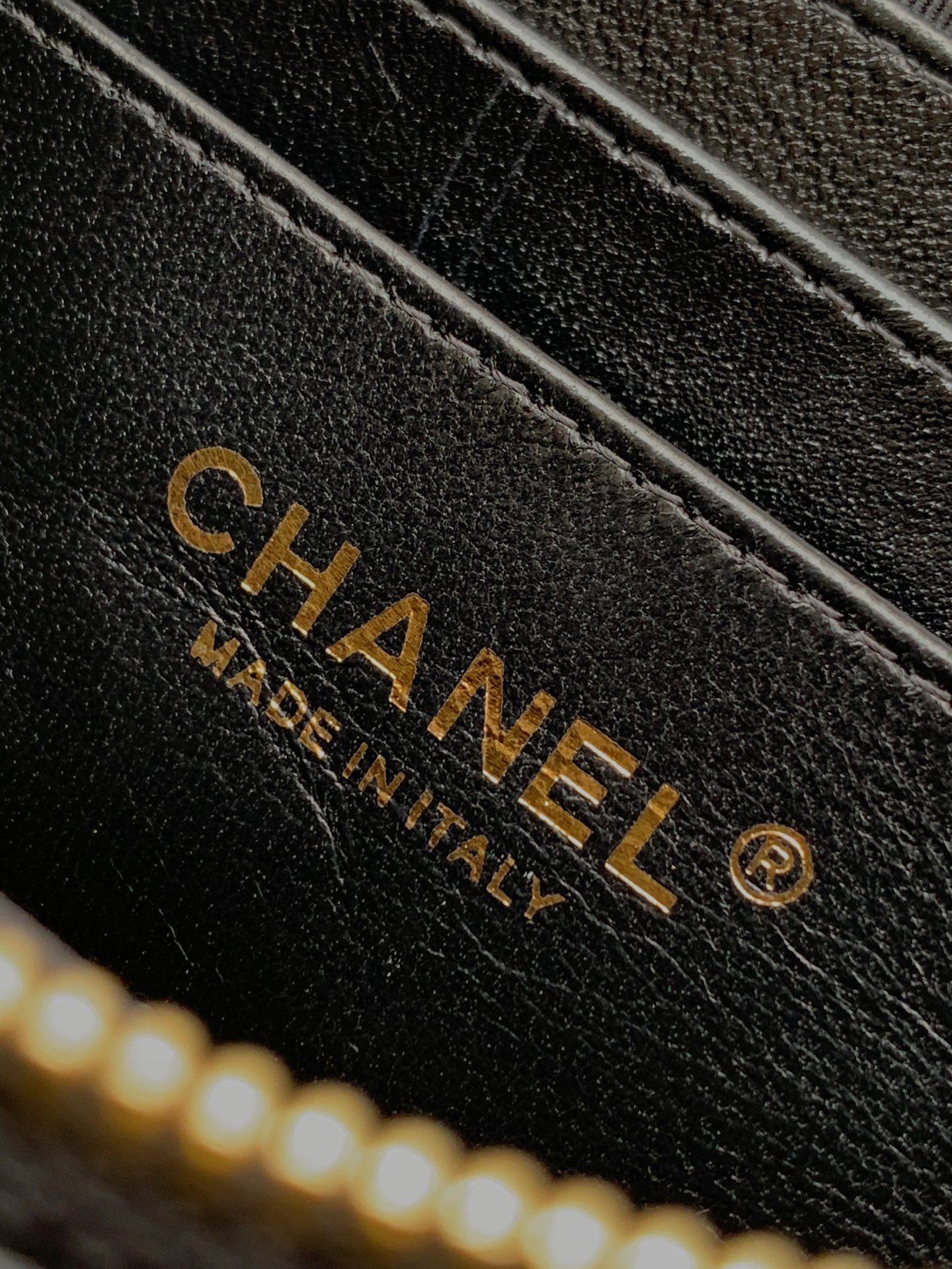 Crafted from luxuriously soft caviar calfskin. Features vintage light gold Double C clasp & sparkling crystal chain strap.