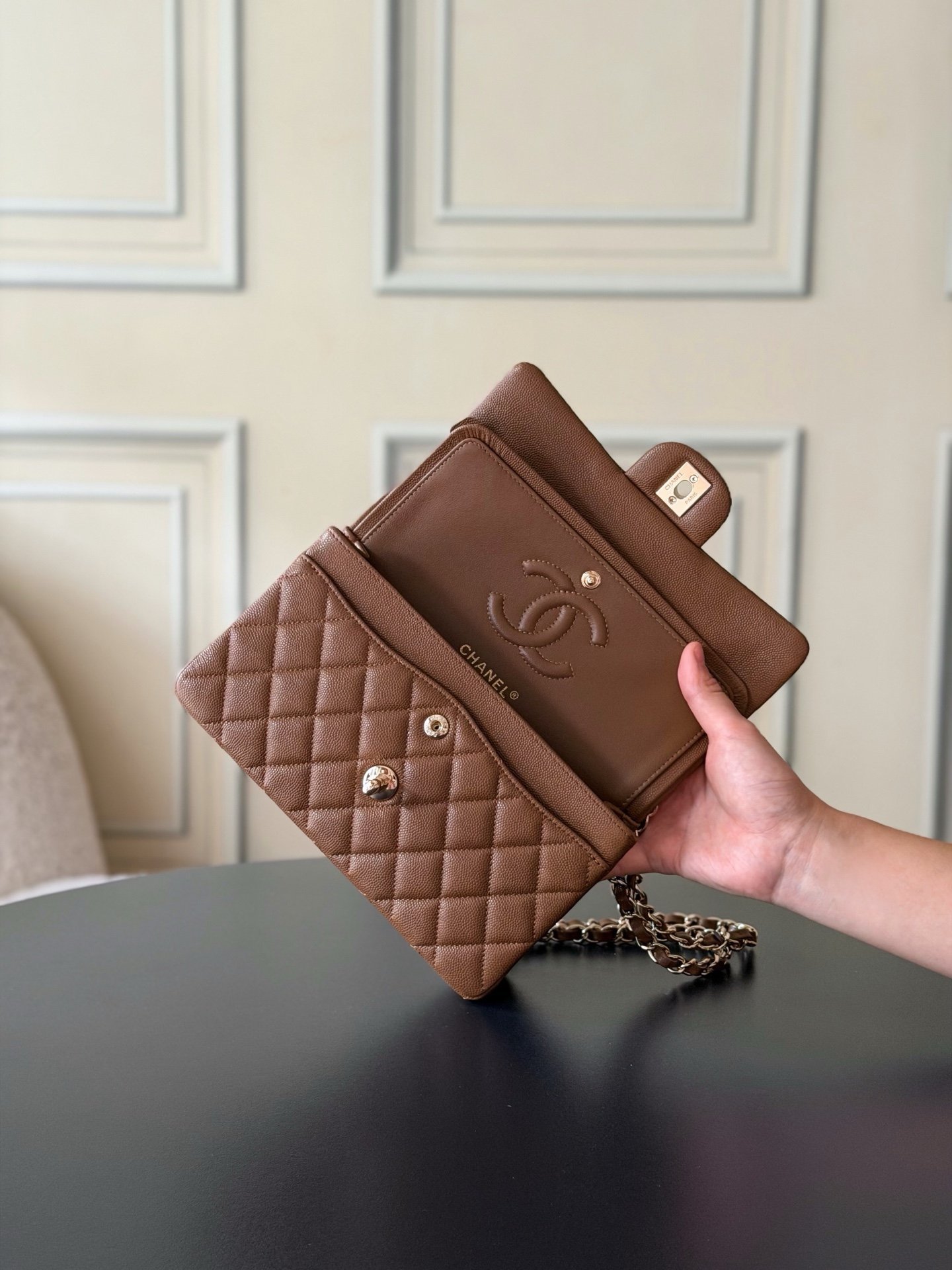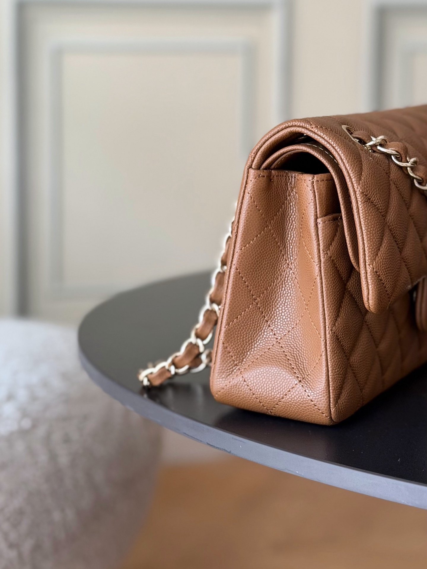 Leather: Original Haas small-grain caviar leather, lined with imported lambskin