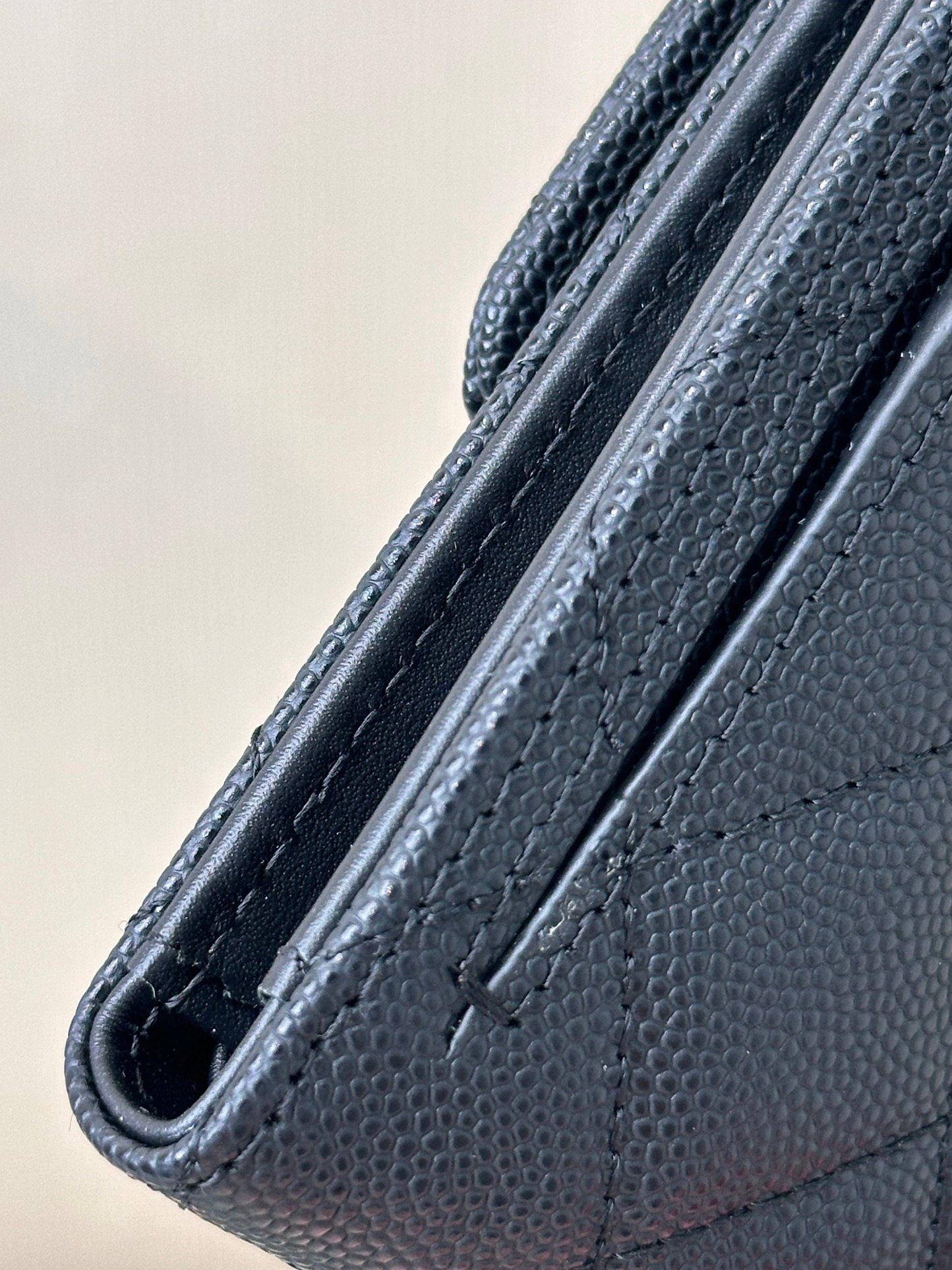 Crafted from caviar grained top-grain cowhide with distinct, three-dimensional and round grains.